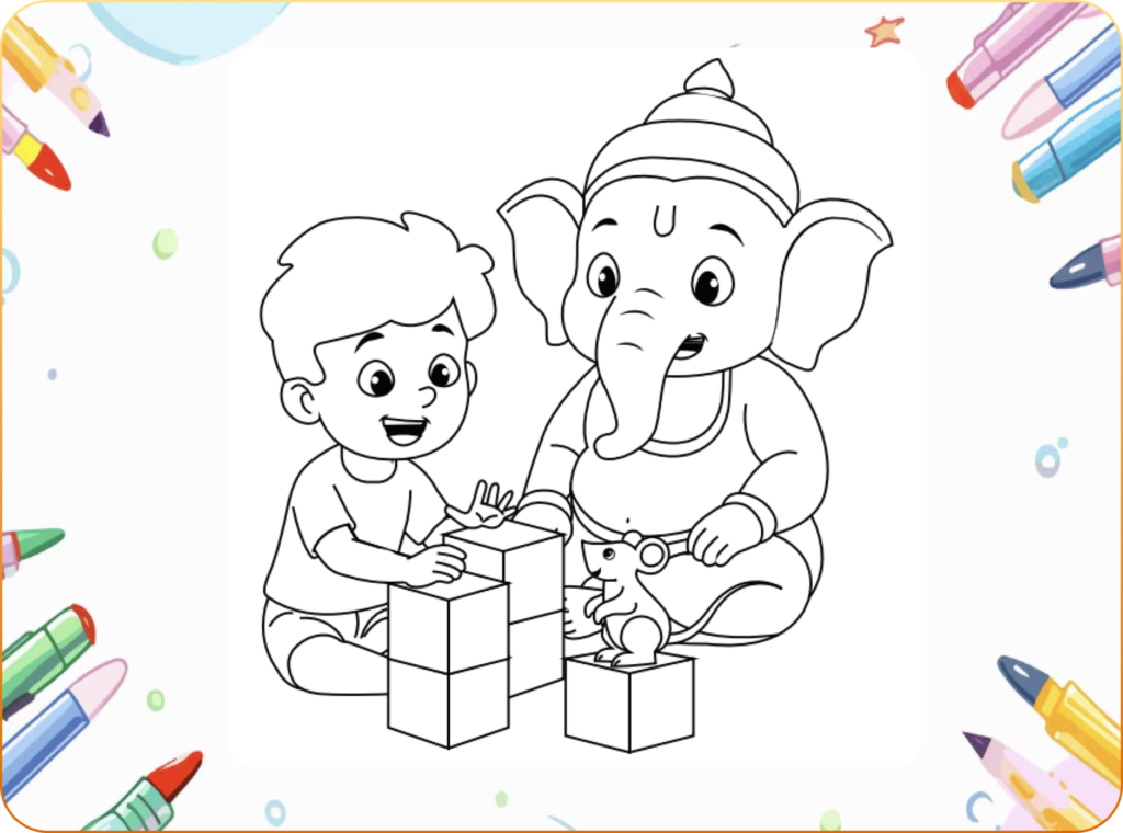 Your child deserves more than cartoons and gadgets. These worksheets give them something greater — the love and protection of Ganesha, Krishna & Hanuman.